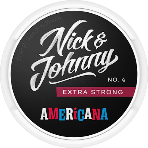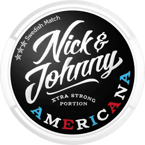 Nick & Johnny Americana från varumärket Nick & Johnny är Portionssnus med stark styrka och med traditionell smak. Nick & Johnny Americana kommer i large format och varje dosa rymmer 20 portioner. Nick & Johnny är tillverkat av Swedish Match.