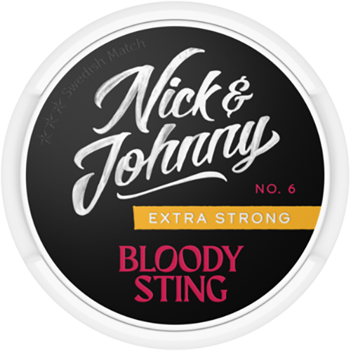Nick & Johnny Bloody Sting från varumärket Nick & Johnny är Portionssnus med extra stark styrka och med frukt och kryddor smak. Nick & Johnny Bloody Sting kommer i large format och varje dosa rymmer 20 portioner. Nick & Johnny är tillverkat av Swedish Match.