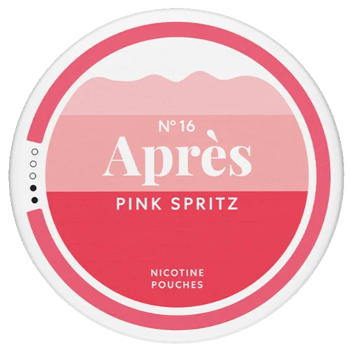 Après No.16 Pink Spritz är ett vitt snus från Après Nicotine AB med en tobaksfri sammansättning och innehåll av nikotin. Produkten levereras i slim-format, vilket innebär avlånga och smala portioner.