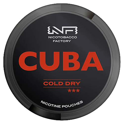 CUBA Black Cold Dry är ett tobaksfritt vitt snus med en tydlig smak av mint och en kraftig kylande effekt. Smaken är frisk och sval med en ren mintkaraktär som ger en uppiggande och långvarig känsla under användningen.