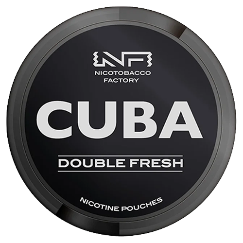 CUBA Black Double Fresh är ett tobaksfritt vitt snus med en tydlig smak av mint och mentol. Smaken är frisk och intensiv med en kraftig kylande effekt som ger en uppiggande och långvarig känsla under användningen.