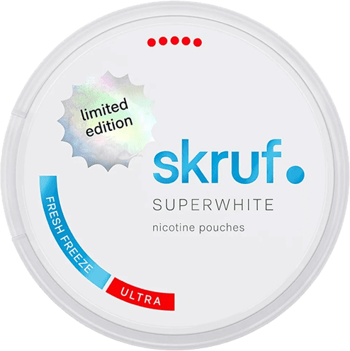 Skruf Superwhite Fresh Freeze Ultra Strong är en nyutgiven produkt från varumärket Skruf Super White. Den bjuder på en smakkombo med inslag av peppermint, mentol och spearmint. Detta extra starka snus presenteras i slim-format och innehåller 24 portioner per dosa. Den tillhör kategorin vitt snus och är tillverkad av Skruf Snus.